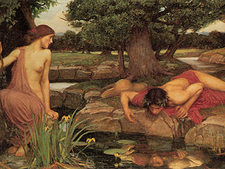 First, let’s start with the Narcissus myth. For those who don’t know, Narcissus was a beautiful and proud hunter incapable of loving anyone but himself. He was so vain, in fact, that the goddess of revenge, Nemesis, attracted him to a pool of water where he fell in love with his own reflection and died gazing at his image.