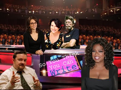 This idea came to me in the shower (where all great ideas strike), the almighty television has given most other industries a shortcut to success. Singers have American Idol, America’s Got Talent, et al. Models have Tyra Banks. Fashion designers have Project Runway. There’s even Top Chef, HGTV’s Designer Star, Shear Genius, So You Think You Can Dance. The list is ridiculously extensive. But what do we have, writers? Nothing. And I propose we change that.